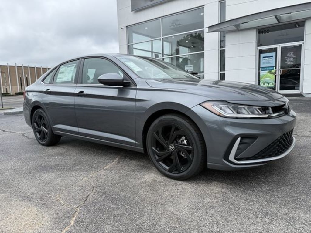 Platinum Gray Metallic 2025 Volkswagen Jetta 1.5T SE FWD 8-Speed Automatic with Tiptronic 1.5L I-4 DI DOHC Turbocharged Bluetooth, Backup Camera, Heated Seats, Automatic Emergency Braking, Blind Spot Warning, Rear Cross Traffic Alert, Lane Departure Warning, Forward Collision Warning, Grigio/Titan Black w/CloudTex & V-Tex Leatherette Seat Trim, Black Wheel Package, Wheels: 18" Dark Graphite Painted Alloy.
