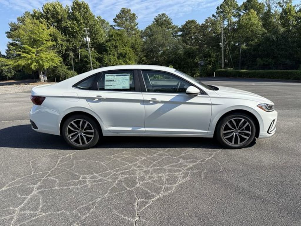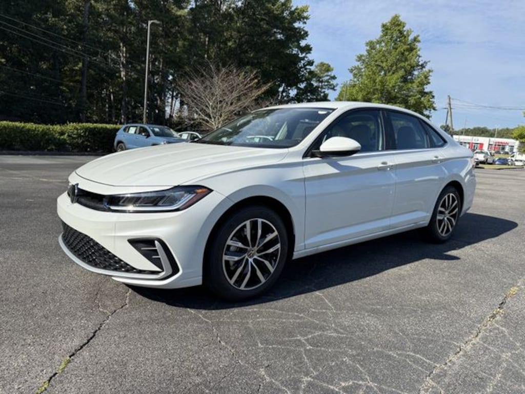 Opal White Pearl 2025 Volkswagen Jetta 1.5T SE FWD 8-Speed Automatic with Tiptronic 1.5L I-4 DI DOHC Turbocharged Bluetooth, Backup Camera, Heated Seats, Automatic Emergency Braking, Blind Spot Warning, Rear Cross Traffic Alert, Lane Departure Warning, Forward Collision Warning, Atlantic Blue/Storm Gray w/CloudTex & V-Tex Leatherette Seat Trim.