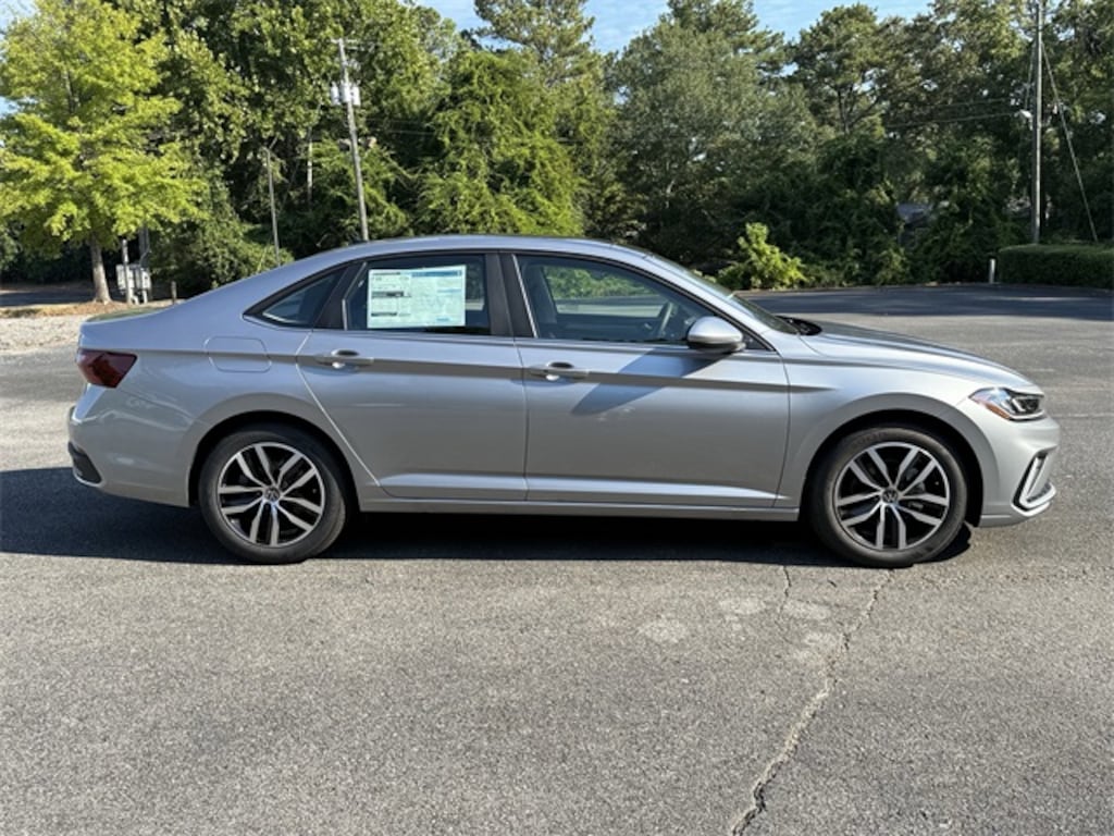 Pyrite Silver Metallic 2025 Volkswagen Jetta 1.5T SE FWD 8-Speed Automatic with Tiptronic 1.5L I-4 DI DOHC Turbocharged Bluetooth, Backup Camera, Heated Seats, Panoramic Sunroof, Automatic Emergency Braking, Blind Spot Warning, Rear Cross Traffic Alert, Lane Departure Warning, Forward Collision Warning, Grigio/Titan Black w/CloudTex & V-Tex Leatherette Seat Trim, Power Tilting & Sliding Sunroof, Sunroof Package.