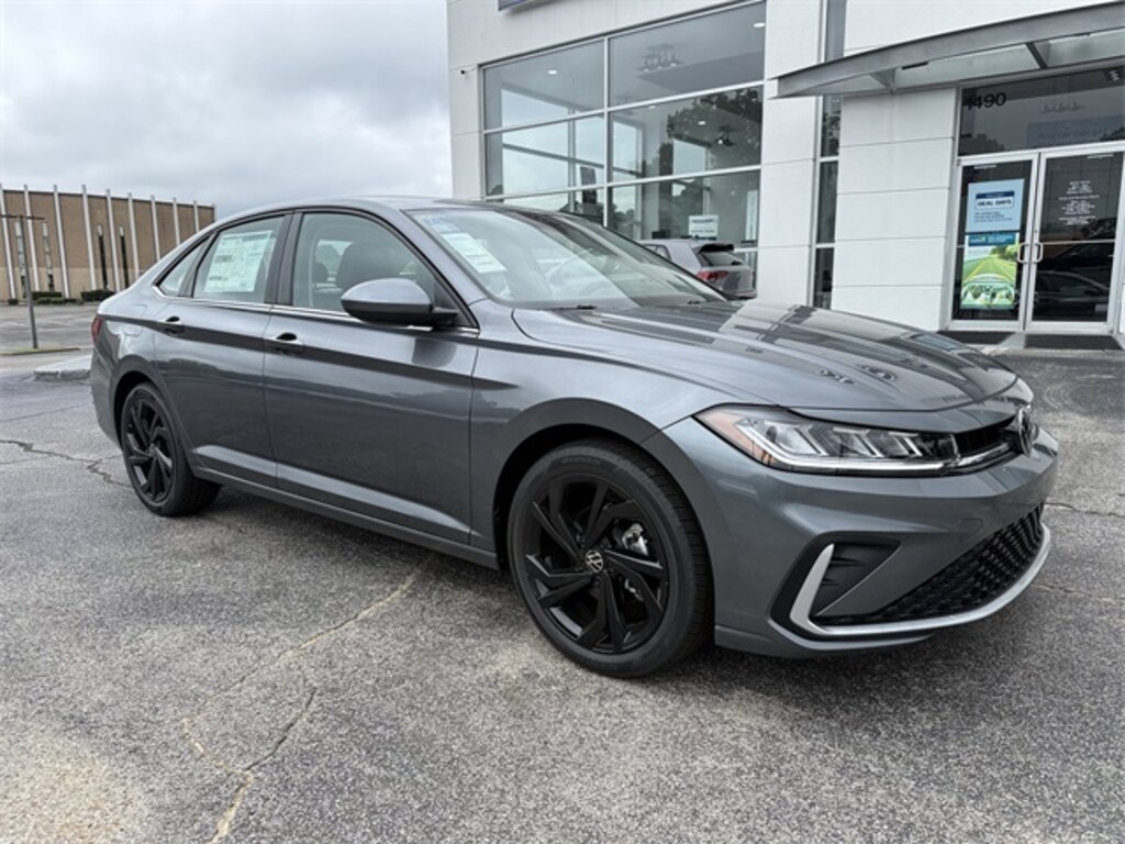Platinum Gray Metallic 2025 Volkswagen Jetta 1.5T SE FWD 8-Speed Automatic with Tiptronic 1.5L I-4 DI DOHC Turbocharged Bluetooth, Backup Camera, Heated Seats, Automatic Emergency Braking, Blind Spot Warning, Rear Cross Traffic Alert, Lane Departure Warning, Forward Collision Warning, Grigio/Titan Black w/CloudTex & V-Tex Leatherette Seat Trim, Black Wheel Package, Wheels: 18" Dark Graphite Painted Alloy.