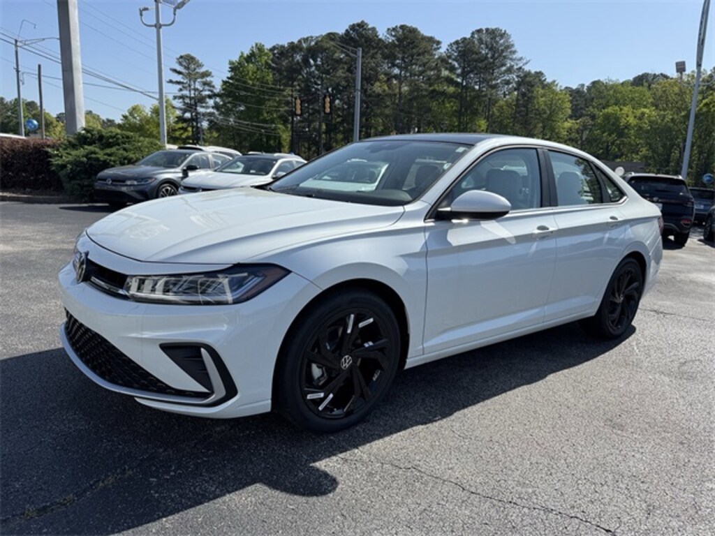 Opal White Pearl 2025 Volkswagen Jetta 1.5T SE FWD 8-Speed Automatic with Tiptronic 1.5L I-4 DI DOHC Turbocharged Bluetooth, Backup Camera, Automatic Emergency Braking, Blind Spot Warning, Rear Cross Traffic Alert, Lane Departure Warning, Forward Collision Warning, Atlantic Blue/Storm Gray w/CloudTex & V-Tex Leatherette Seat Trim, Black Wheel Package, Power Tilting & Sliding Sunroof, Sunroof Package, Wheels: 18" Dark Graphite Painted Alloy.