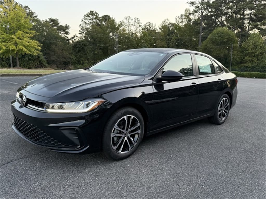 Deep Black Pearl 2025 Volkswagen Jetta 1.5T Sport FWD 8-Speed Automatic with Tiptronic 1.5L I-4 DI DOHC Turbocharged Bluetooth, Backup Camera, Heated Seats, Automatic Emergency Braking, Blind Spot Warning, Rear Cross Traffic Alert, Lane Departure Warning, Forward Collision Warning, Titan Black w/Cloth Seat Trim.