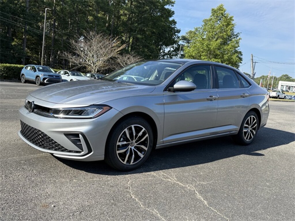 Pyrite Silver Metallic 2025 Volkswagen Jetta 1.5T SE FWD 8-Speed Automatic with Tiptronic 1.5L I-4 DI DOHC Turbocharged Bluetooth, Backup Camera, Heated Seats, Panoramic Sunroof, Automatic Emergency Braking, Blind Spot Warning, Rear Cross Traffic Alert, Lane Departure Warning, Forward Collision Warning, Grigio/Titan Black w/CloudTex & V-Tex Leatherette Seat Trim, Power Tilting & Sliding Sunroof, Sunroof Package.