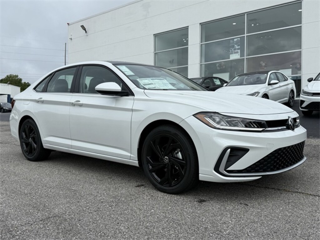 Opal White Pearl 2025 Volkswagen Jetta 1.5T SE FWD 8-Speed Automatic with Tiptronic 1.5L I-4 DI DOHC Turbocharged Bluetooth, Backup Camera, Automatic Emergency Braking, Blind Spot Warning, Rear Cross Traffic Alert, Lane Departure Warning, Grigio/Titan Black w/CloudTex & V-Tex Leatherette Seat Trim, Black Wheel Package, Power Tilting & Sliding Sunroof, Sunroof Package, Wheels: 18" Dark Graphite Painted Alloy.