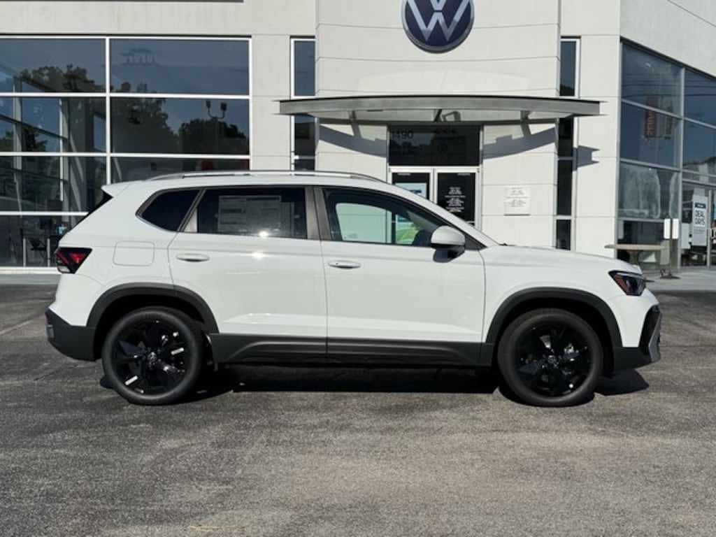 Pure White 2025 Volkswagen Taos 1.5T SE FWD 8-Speed Automatic with Tiptronic 1.5L I4 Turbocharged DOHC 16V LEV3-SULEV30 174hp Bluetooth, Backup Camera, Heated Seats, Automatic Emergency Braking, Blind Spot Warning, Rear Cross Traffic Alert, Lane Departure Warning, Forward Collision Warning, Black Wheel Package, Wheels: 18" Black Painted Alloy.