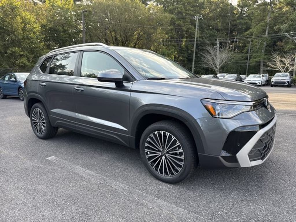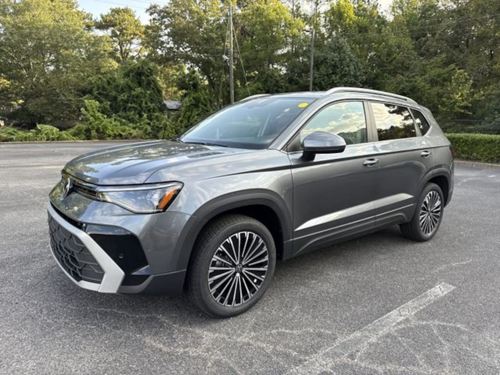 Platinum Gray Metallic 2025 Volkswagen Taos 1.5T SE FWD 8-Speed Automatic with Tiptronic 1.5L I4 Turbocharged DOHC 16V LEV3-SULEV30 174hp Bluetooth, Backup Camera, Heated Seats, Automatic Emergency Braking, Blind Spot Warning, Rear Cross Traffic Alert, Lane Departure Warning, Forward Collision Warning, Panoramic Sunroof Package.
