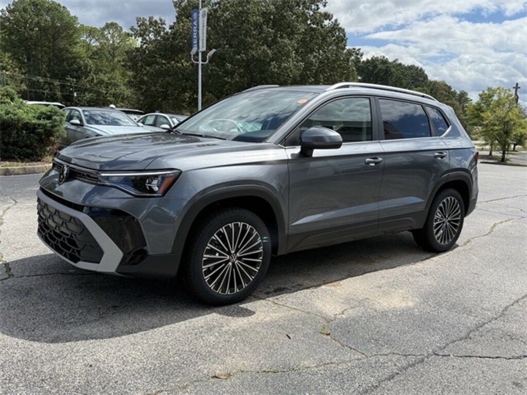 Platinum Gray Metallic 2025 Volkswagen Taos 1.5T SE FWD 8-Speed Automatic with Tiptronic 1.5L I4 Turbocharged DOHC 16V LEV3-SULEV30 174hp Bluetooth, Backup Camera, Automatic Emergency Braking, Blind Spot Warning, Rear Cross Traffic Alert, Lane Departure Warning, Forward Collision Warning.