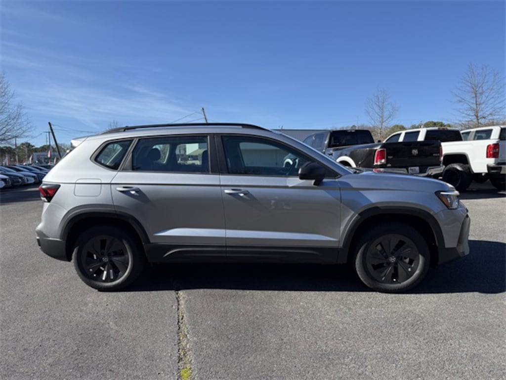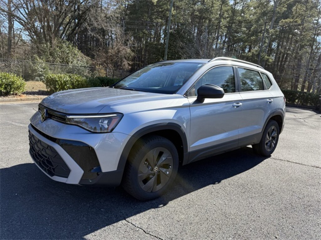 Pyrite Silver Metallic 2025 Volkswagen Taos 1.5T S FWD 8-Speed Automatic with Tiptronic 1.5L I4 Turbocharged DOHC 16V LEV3-SULEV30 174hp Bluetooth, Backup Camera, Automatic Emergency Braking, Blind Spot Warning, Rear Cross Traffic Alert, Lane Departure Warning, Forward Collision Warning.