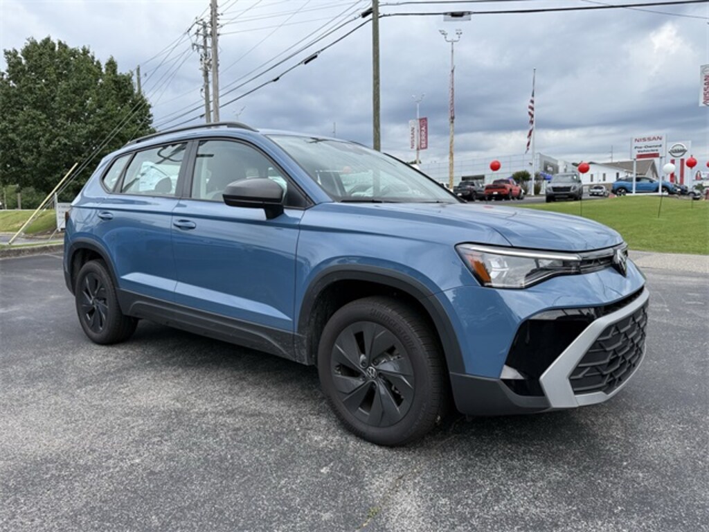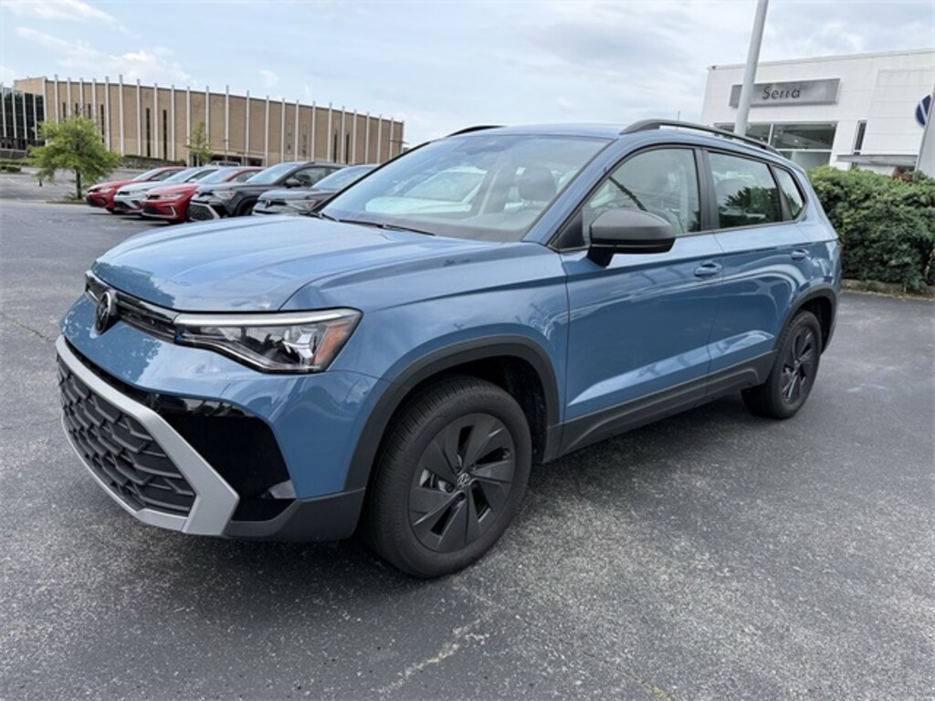 Monterey Blue Pearl 2025 Volkswagen Taos 1.5T S FWD 8-Speed Automatic with Tiptronic 1.5L I4 Turbocharged DOHC 16V LEV3-SULEV30 174hp Bluetooth, Backup Camera, Automatic Emergency Braking, Blind Spot Warning, Rear Cross Traffic Alert, Lane Departure Warning, Forward Collision Warning.