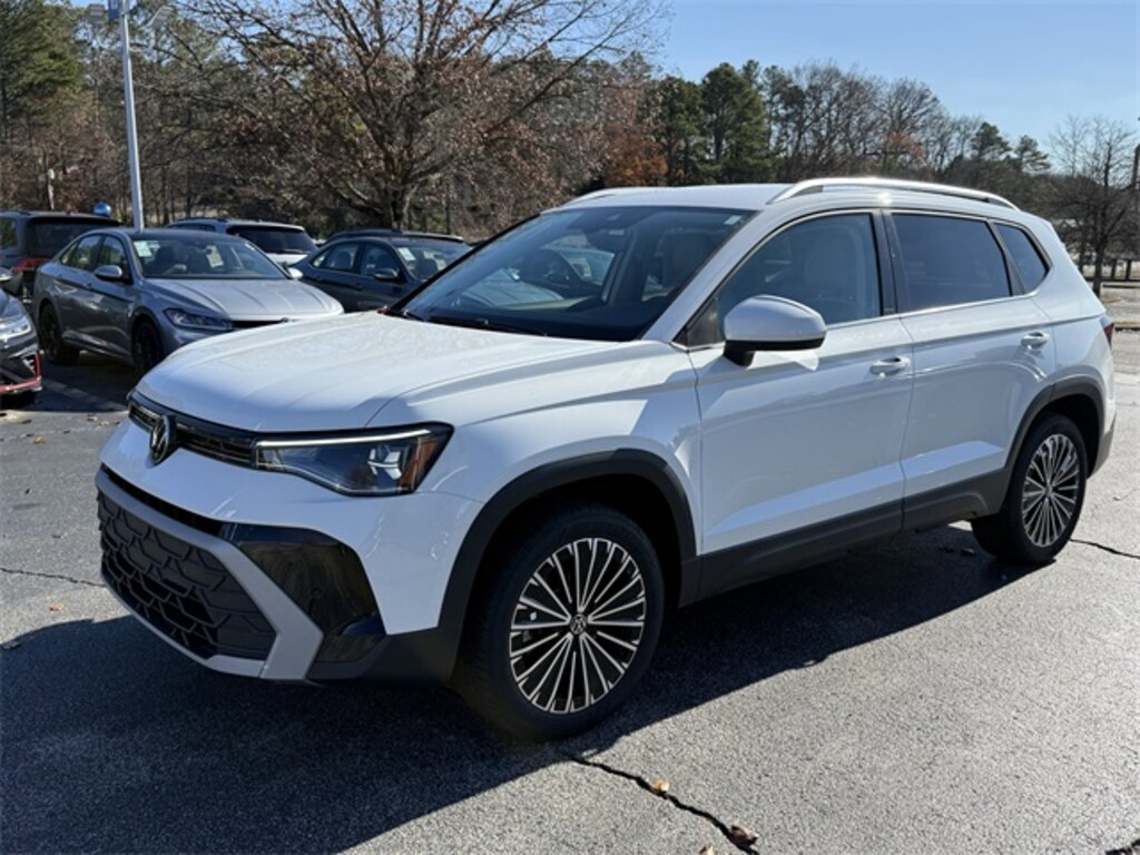 Pure White 2025 Volkswagen Taos 1.5T SE FWD 8-Speed Automatic with Tiptronic 1.5L I4 Turbocharged DOHC 16V LEV3-SULEV30 174hp Backup Camera, Heated Seats, Automatic Emergency Braking, Blind Spot Warning, Rear Cross Traffic Alert, Lane Departure Warning, Forward Collision Warning.