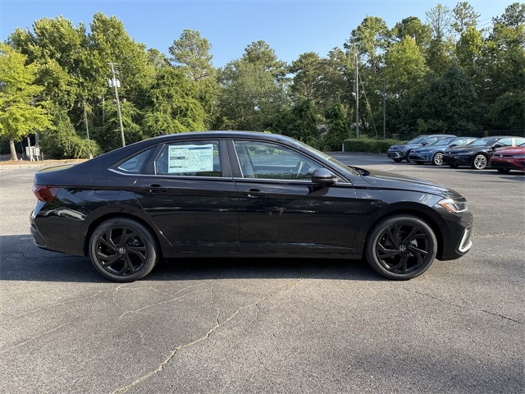 Deep Black Pearl 2026 Volkswagen Jetta 1.5T SE FWD 8-Speed Automatic with Tiptronic 1.5L I-4 DI DOHC Turbocharged Bluetooth, Backup Camera, Heated Seats, Panoramic Sunroof, Automatic Emergency Braking, Blind Spot Warning, Rear Cross Traffic Alert, Lane Departure Warning, Forward Collision Warning, Atlantic Blue/Storm Gray w/CloudTex & V-Tex Leatherette Seat Trim, Black Wheel Package, Wheels: 18" Dark Graphite Painted Alloy.