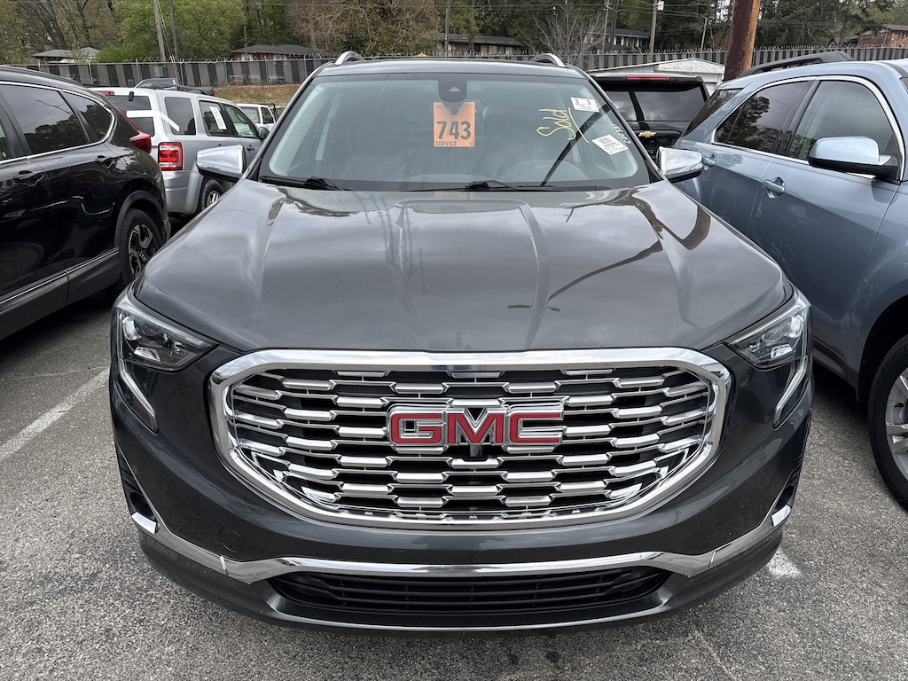 2019 GMC Terrain Denali Graphite Gray Metallic2 USB Data Ports, 2 USB Data Ports w/SD Card Reader, 3.17 Axle Ratio, 4-Wheel Disc Brakes, 6-Way Power Front Passenger Seat, 7 Speakers, 8-Way Power Driver Seat Adjuster, ABS brakes, Adaptive Cruise Control - Camera, Air Conditioning, Alloy wheels, AM/FM radio: SiriusXM, Apple CarPlay/Android Auto, Auto-dimming door mirrors, Auto-dimming Rear-View mirror, Automatic temperature control, Bluetooth® For Phone, Brake assist, Bumpers: body-color, Comfort Package, Compass, Delay-off headlights, Driver & Front Passenger Heated Seats, Driver Alert Package II, Driver door bin, Driver vanity mirror, Dual front impact airbags, Dual front side impact airbags, Electronic Stability Control, Emergency communication system, Exterior Parking Camera Rear, Following Distance Indicator, Forward Collision Alert, Four wheel independent suspension, Front anti-roll bar, Front Bucket Seats, Front Center Armrest, Front dual zone A/C, Front fog lights, Front Passenger 2-Way Power Lumbar, Front Pedestrian Braking, Front reading lights, Fully automatic headlights, Garage door transmitter, HD Radio, Heated door mirrors, Heated front seats, Heated Rear Outboard Seating Positions, Heated steering wheel, Illuminated entry, IntelliBeam Auto High Beam Headlamp Control, Lane Keep Assist w/Lane Departure Warning, Low Speed Forward Automatic Braking, Low tire pressure warning, Memory seat, Navigation System, Occupant sensing airbag, Outside temperature display, Overhead airbag, Overhead console, Panic alarm, Passenger door bin, Passenger vanity mirror, Perforated Leather-Appointed Seat Trim w/Denali Logo, Power door mirrors, Power Driver Lumbar Control, Power driver seat, Power Liftgate, Power passenger seat, Power steering, Power windows, Preferred Equipment Group 5SA, Premium 7-Speaker Bose Sound System w/Amplifier, Radio data system, Radio: GMC Infotainment System w/Navigation, Rear anti-roll bar, Rear seat center armrest, Rear window defroster, Rear window wiper, Remote keyless entry, Roof rack: rails only, Security system, SiriusXM Radio, Skyscape Power Sunroof w/Power Sunscreen, Speed control, Speed-sensing steering, Split folding rear seat, Spoiler, Steering wheel mounted audio controls, Tachometer, Telescoping steering wheel, Tilt steering wheel, Traction control, Trip computer, Turn signal indicator mirrors, Variably intermittent wipers, Ventilated Driver Seat, Ventilated Front Passenger Seat, Wheels: 19" x 7.5" Ultra-Bright Machined Aluminum.Recent Arrival!22/28 City/Highway MPG All pre-owned prices plus tax, title, $799 Doc Fee & $2597 Protection Package. All internet prices require customer to finance with dealer captive lender. All pricing and details are believed to be accurate, but we do not warrant or guarantee such accuracy. While every reasonable effort is made to ensure the accuracy of this information, we are not responsible for any errors or omissions contained on these pages.Experience the Serra Promise - it's our promise to you; our valued customer. It's peace of mind that at any of our dealerships, you will find exactly what you need, from friends and neighbors you can trust for the road ahead! It's our promise to you: our valued customer. Our Family Serving Your Family Since 1981. Call for info at 205-588-4374 or visit us at www.serrachevy.com.
